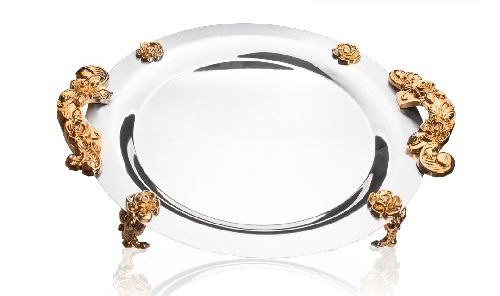 سینی استیل نگار گرد کوچک دسته طلا مدل گلستان کد 417