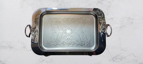 سینی استیل سیلا مستطیل بزرگ گلدار دسته تاجی کد 116