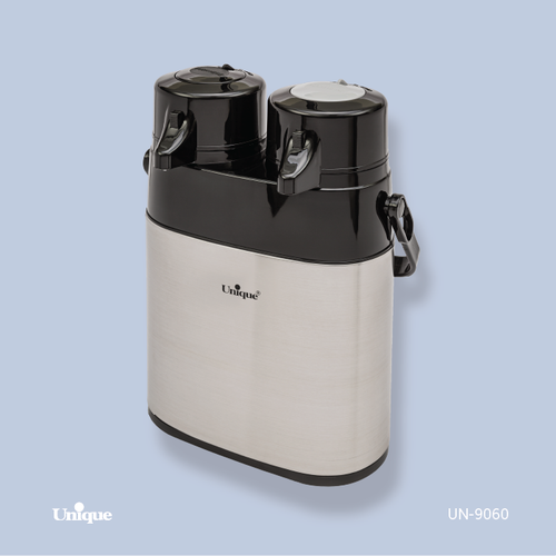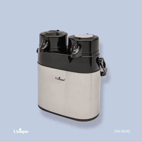 فلاسک دو قلو 1 لیتر بدنه استیل شیشه دار یونیک کد 9040
