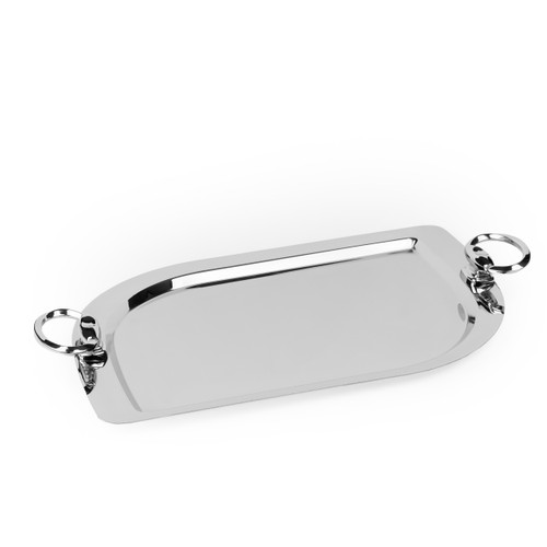 سینی استیل سیلا بیضی گلدار دسته لوزی کد 604