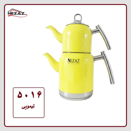 کتری قوری استیل استوانه ای نزاز 2 لیتر کد 5016 رنگ لیمویی