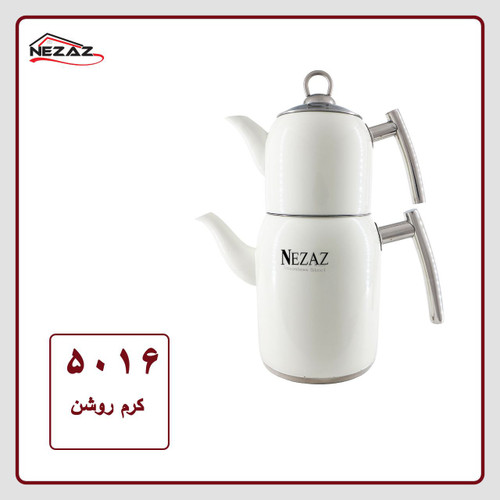 کتری قوری استیل استوانه ای نزاز 2 لیتر کد 5016 رنگ شیری