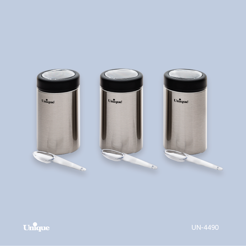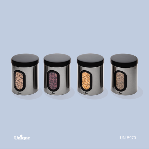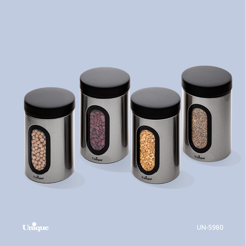 ناموجودقوطی حبوبات 4 سایز پنجره دار استیل یونیک کد 5990