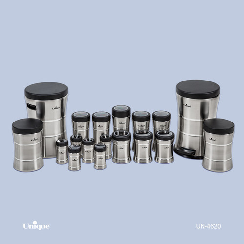 ناموجودسرویس آشپزخانه 18 پارچه یونیک نقره ای درب استیل کد 4688 کمرباریک