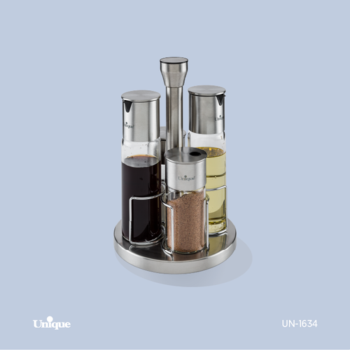 ناموجودسرویس ادویه 7 پارچه استیل - شیشه گردان یونیک کد 1799
