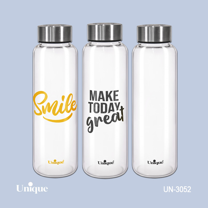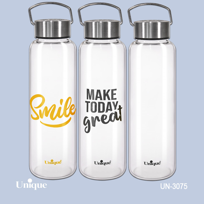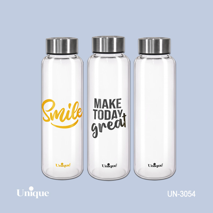 بطری آب شیشه ای درب استیل 830 میل یونیک کد 3054 ارسال رندوم