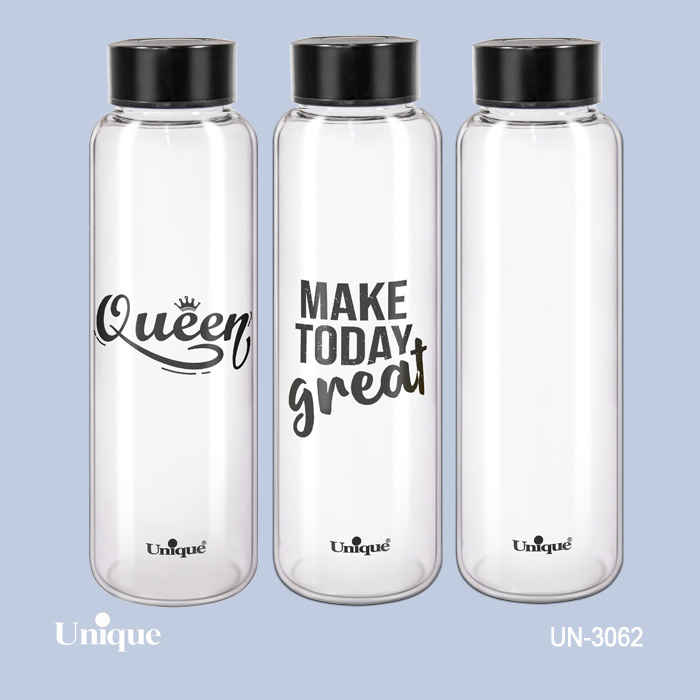 بطری آب شیشه ای درب مشکی 1030 میل یونیک کد 3064 ارسال رندوم