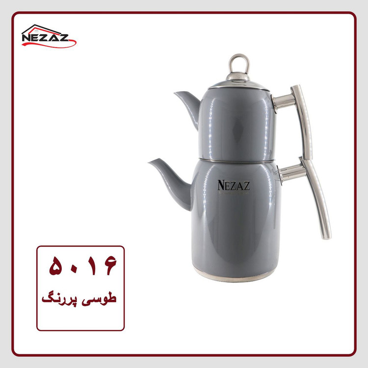 کتری قوری استیل استوانه ای نزاز 2 لیتر کد 5016 رنگ طوسی تیره