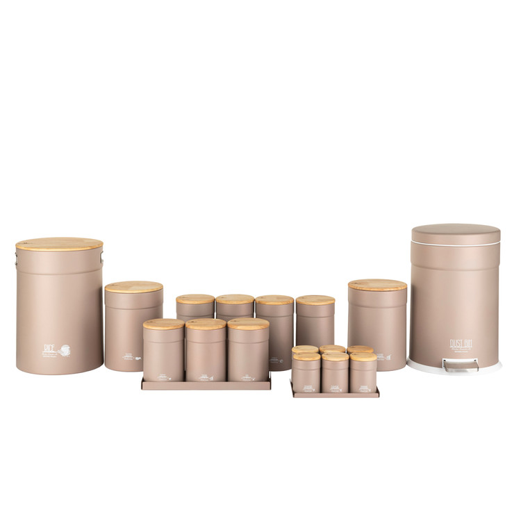 سرویس آشپزخانه 19 پارچه راکلند رزگلد درب بامبو مدل تمیس