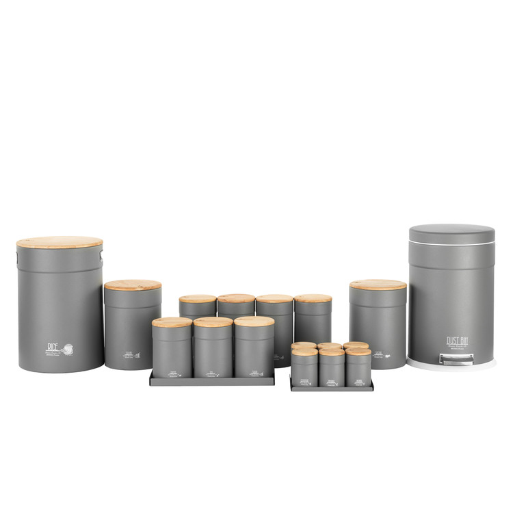 سرویس آشپزخانه 19 پارچه راکلند طوسی درب بامبو مدل تمیس