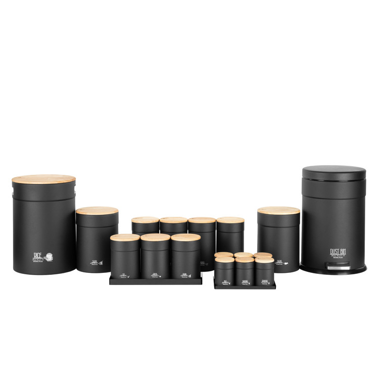 سرویس آشپزخانه 19 پارچه راکلند مشکی درب بامبو مدل تمیس