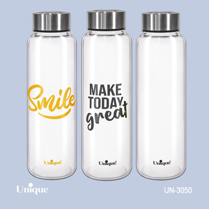 بطری آب شیشه ای درب استیل 1230 میل یونیک کد 3050 ارسال رندوم