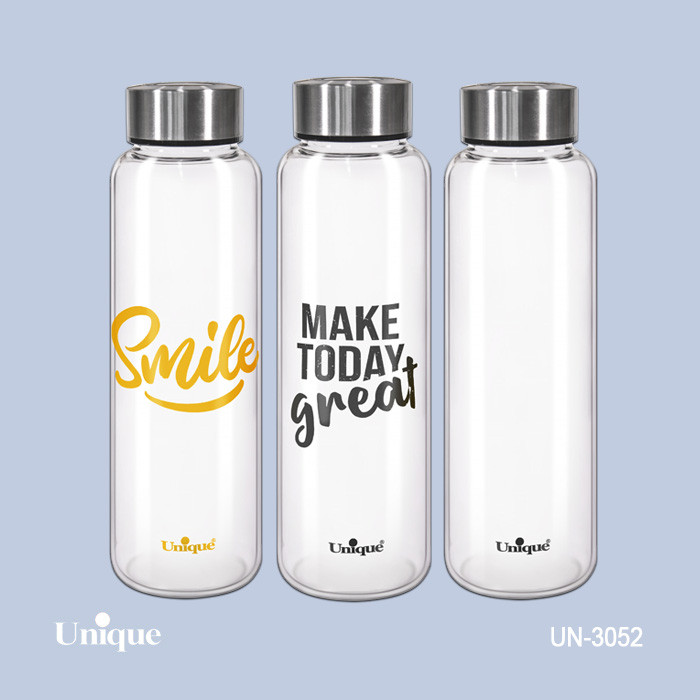 بطری آب شیشه ای درب استیل 1030 میل یونیک کد 3052 ارسال رندوم