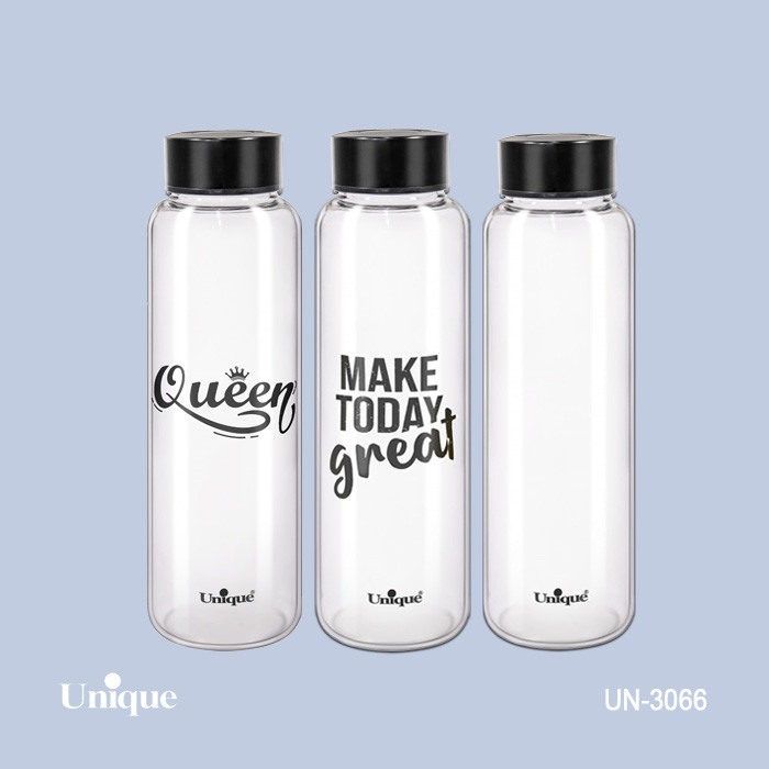 بطری آب شیشه ای درب مشکی 830 میل یونیک کد 3066 ارسال رندوم