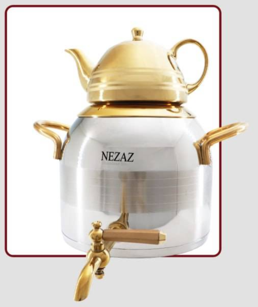 کتری قوری نزاز 5 لیتری دسته طلایی طرح ترک کد 2601