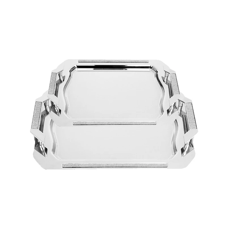 سینی استیل دوقلو نگین دار کی اس تی کد 817 جنس استیل نگیر با ضمانت و شرکتی ابعاد سینی کوچک :28*37 ابعاد سینی بزرگ : 43*30