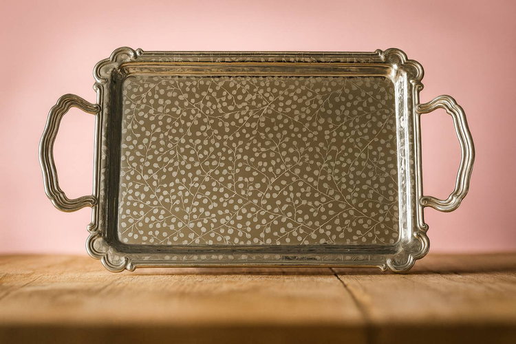 سینی استیل یک میل بزرگ خارجی یونیک کد 4025 طرح برگ ریز