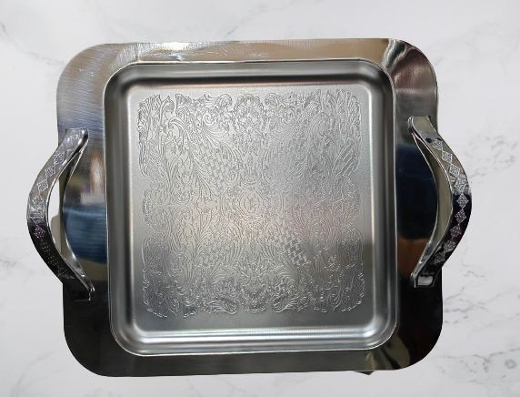 سینی استیل سیلا مربع گلدار دسته لوزی کد 304