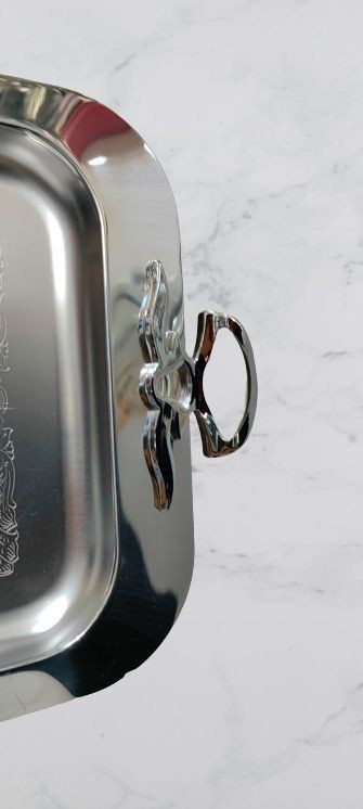 سینی استیل سیلا مستطیل بزرگ گلدار دسته تاجی کد 116