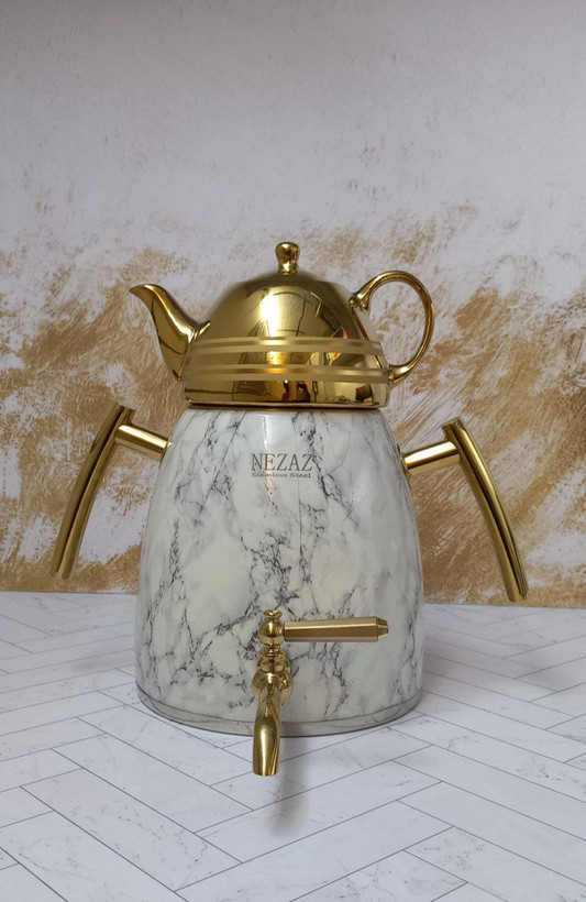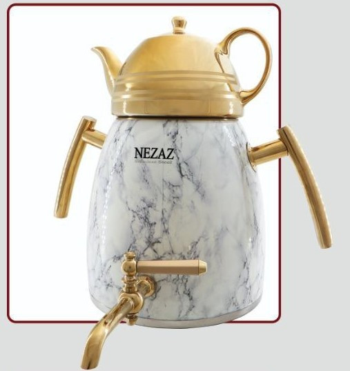 کتری قوری هرمی سنگی سفید طلایی نزاز