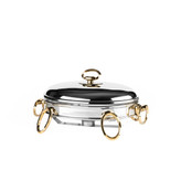 سوفله بیضی سیلور-طلایی راکلند مدل لنین سایز کوچک 1.1 لیتر پایه فلزی پیرکس خارجی