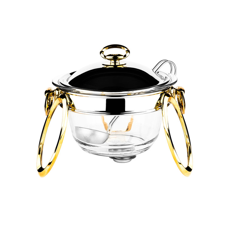سوفله سوپ خوری سیلور- طلایی راکلند مدل لنین 4 لیتر پایه فلزی پیرکس خارجی