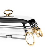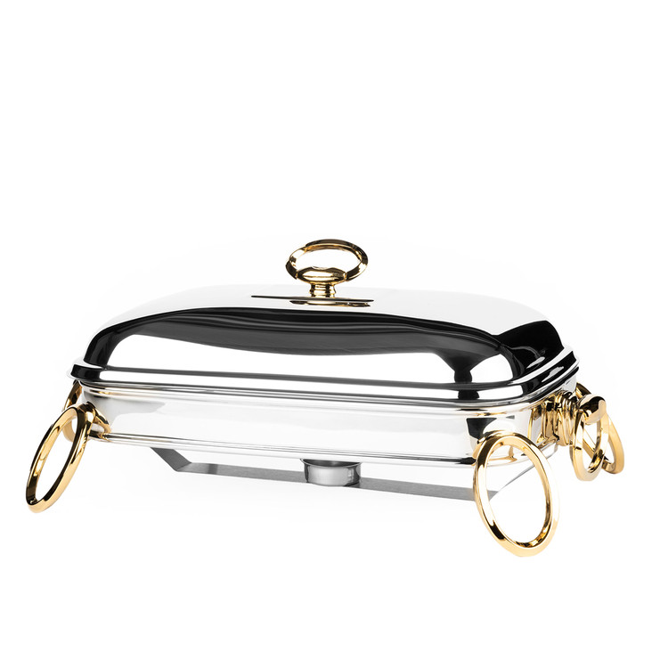 سوفله مستطیل سیلور- طلایی راکلند مدل لنین سایز بزرگ 3.3 لیتر پایه فلزی پیرکس خارجی